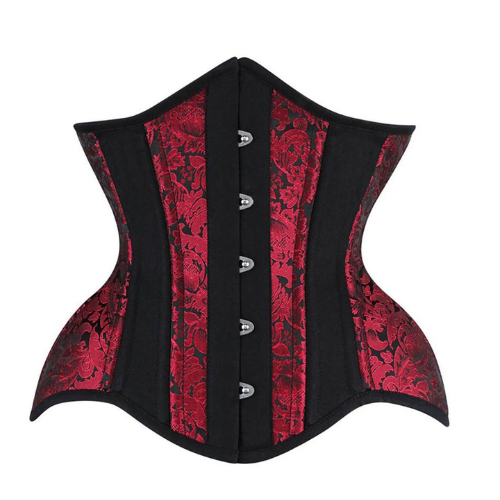 Black Red Brocade Authentic Steel Boned Underbust Waist Training Corset