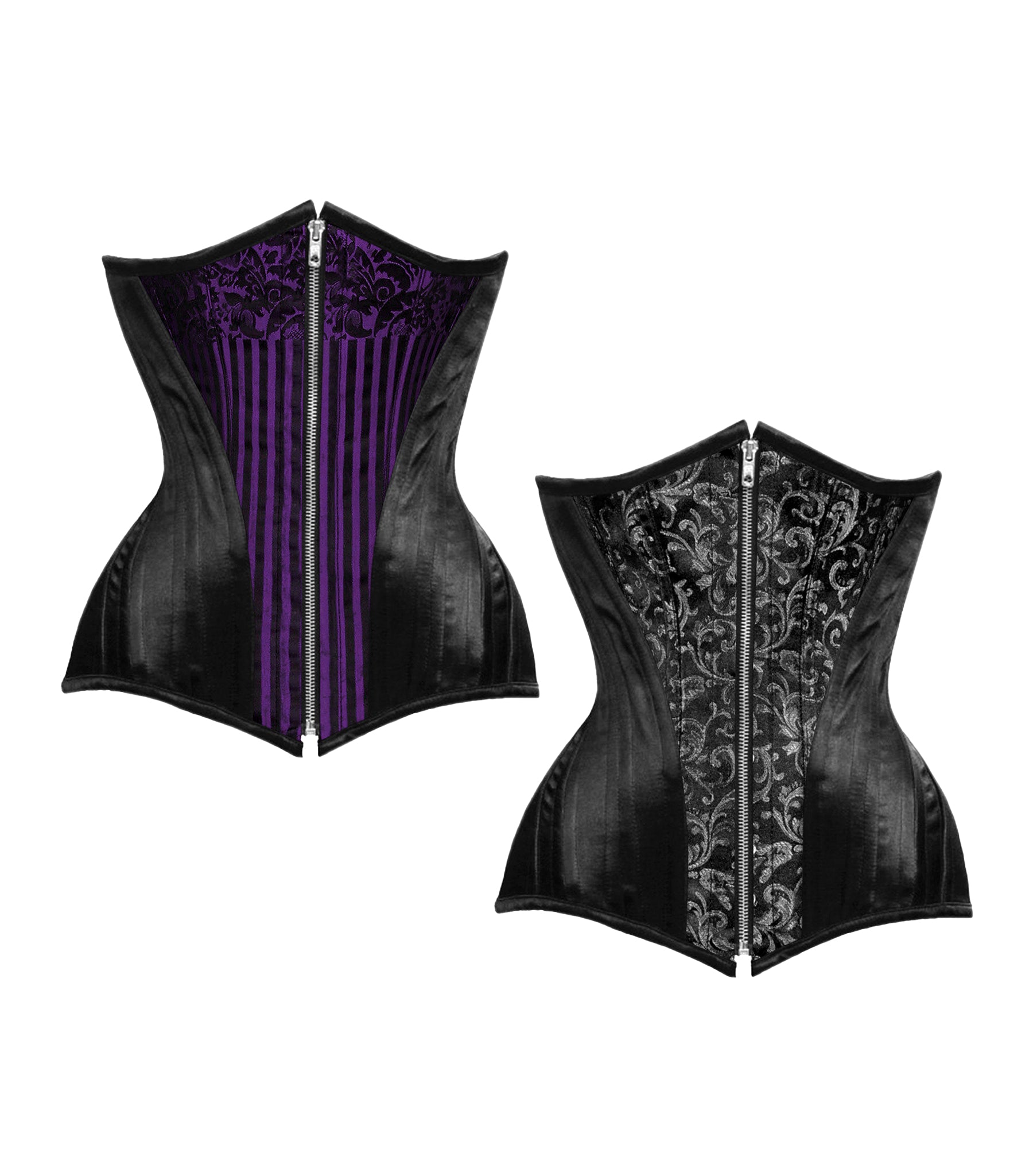 Black/Silver Brocade Authentic Steel Boned Waist Training Reversible Underbust Corset